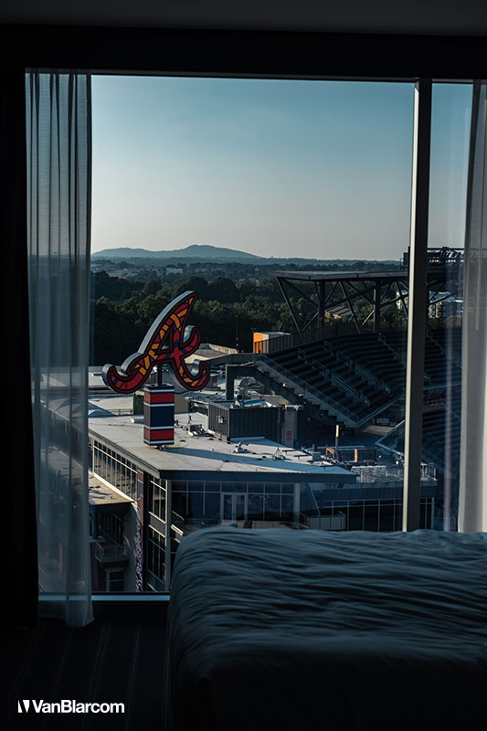 September 2022 - Dad and I were able to squeeze in our yearly baseball trip at the last minute in 2022. With a baby on the way and my insane workload we kept it as close as we could and chose Atlanta. When I was planning this last-minute trip, I expected the worst. I knew nothing about Atlanta except that Ludacris was raised there and it was a primary filming location for The Walking Dead. Happily, my expectations were shattered by the views, the people, and The Battery. The Battery had been completed in 2017 and was completely off my radar. It is AWESOME and is one of the first stadiums we visited that has a town build around it with apartments, hotels, bars, and restaurants. The whole experience is very cool and was an easy plane ride from Trenton airport for us. The people in Atlanta couldn't have been friendlier including our Uber drivers who pointed us in the best direction for food and entertainment. We were lucky and due to a room mix-up at our first hotel, Expedia.com put us up at The Omni, which is second to none and we had an incredible view of the stadium from our room (which had floor-to-ceiling windows).